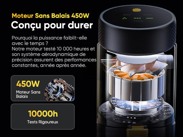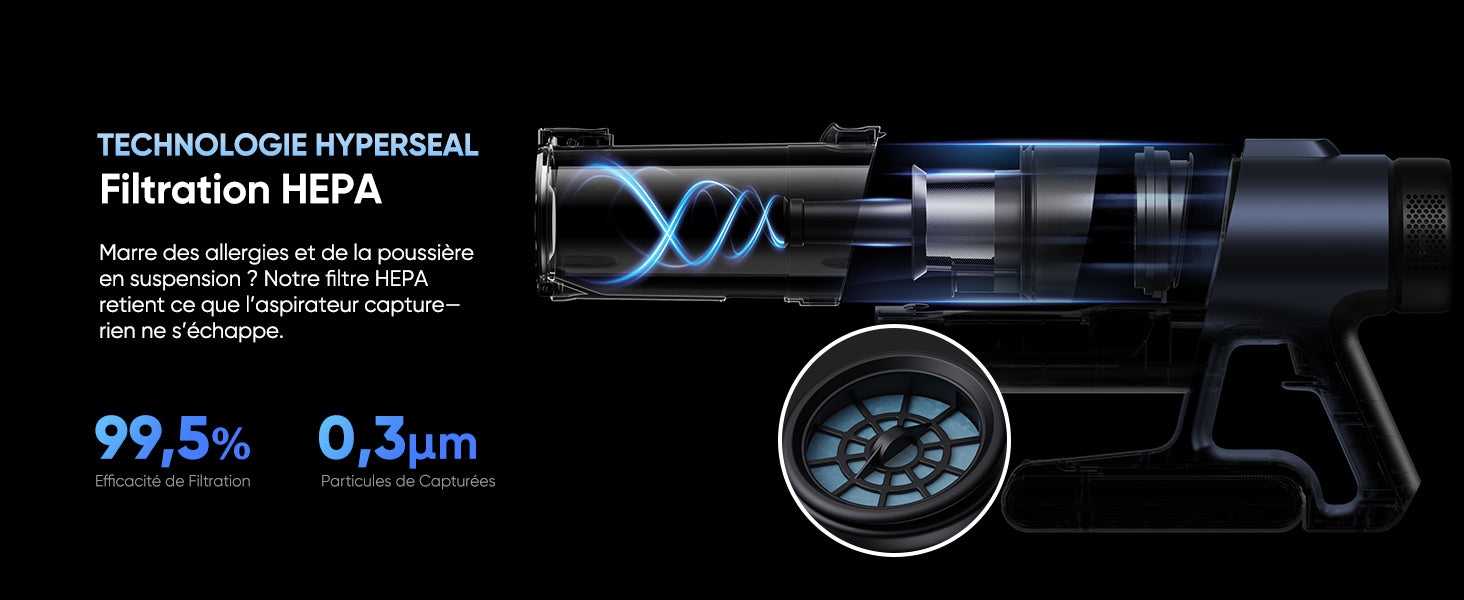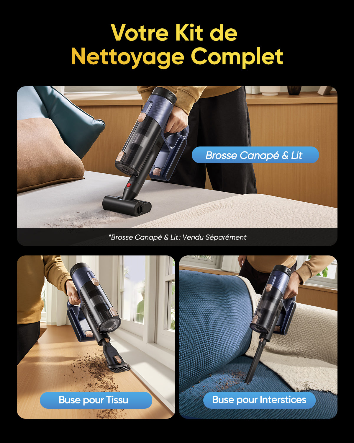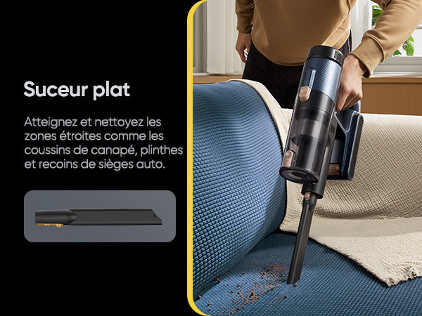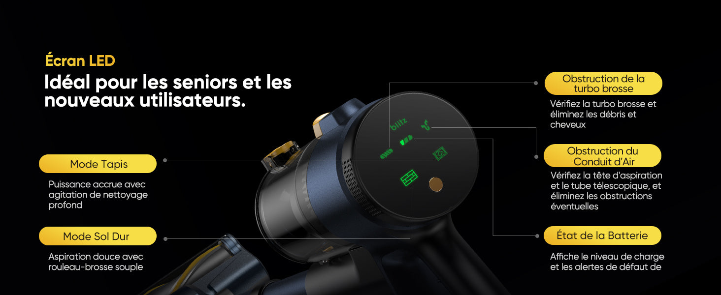 Le bac à poussière de grande capacité ne nécessite pas de nettoyage fréquent, et la fonction de vidage en un seul geste facilite le nettoyage.