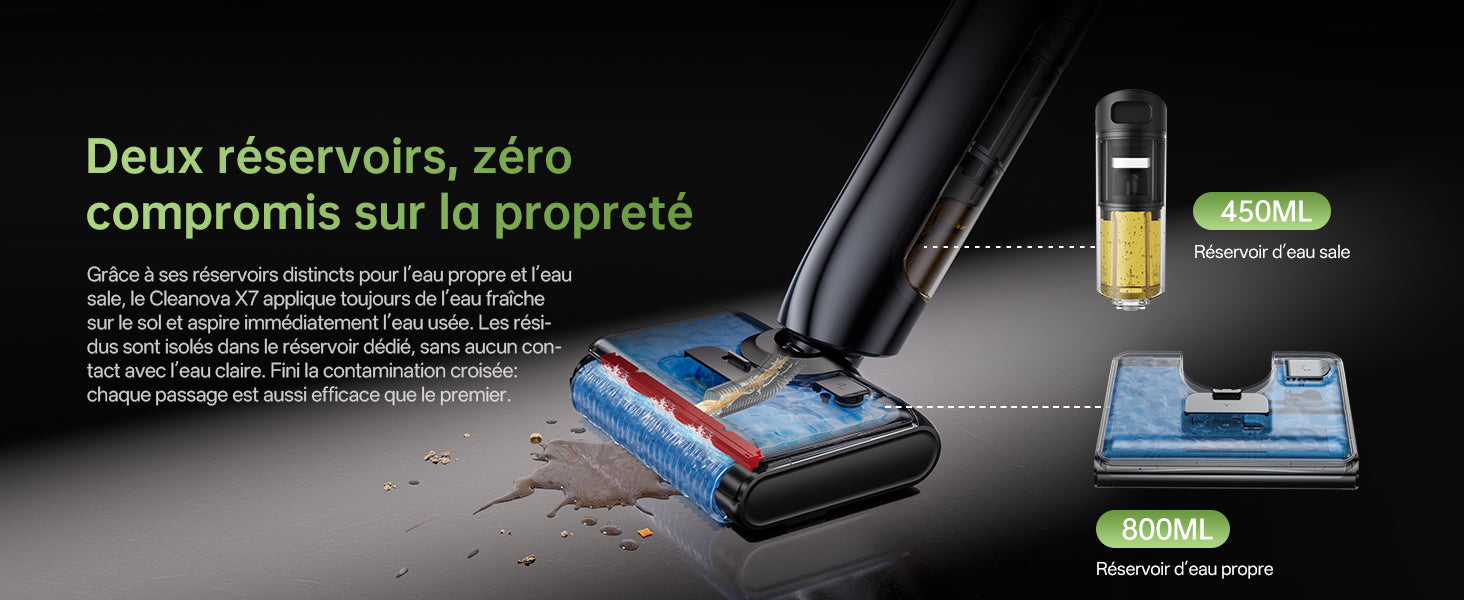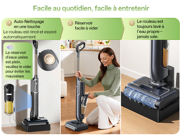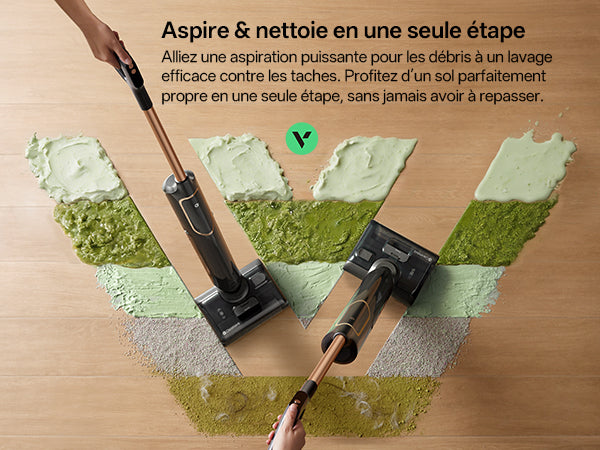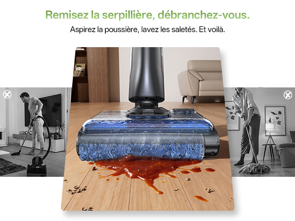 Aspirez et lavez en une seule étape. Sans fil. Sans tracas.