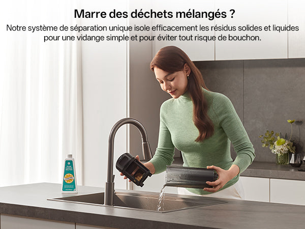 Conception spéciale pour séparer les déchets solides, permettant une évacuation facile et sans désordre.