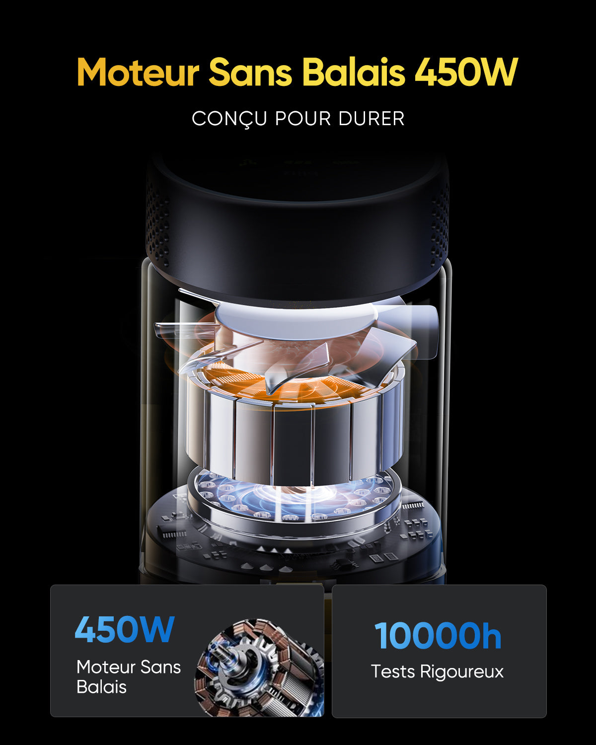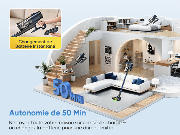 Longue autonomie pour un nettoyage quotidien, batterie amovible pour un chargement pratique.