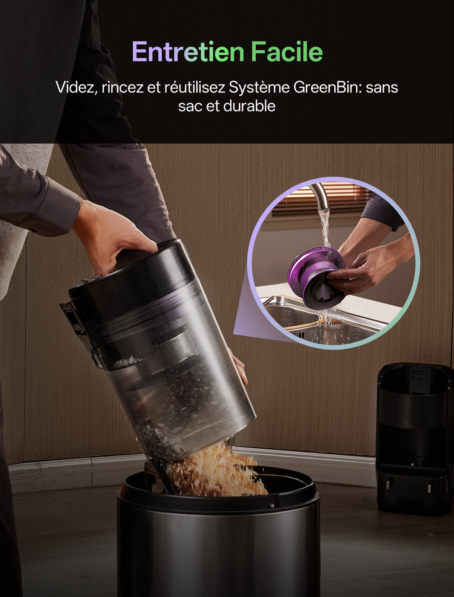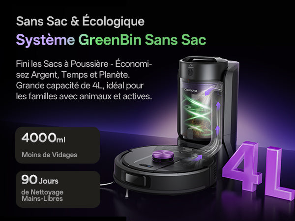 Système GreenBin 4L. Évitez les sacs à poussière, économisez argent et temps. Jusqu'à 90 jours d'autonomie.