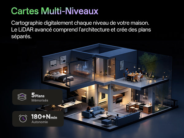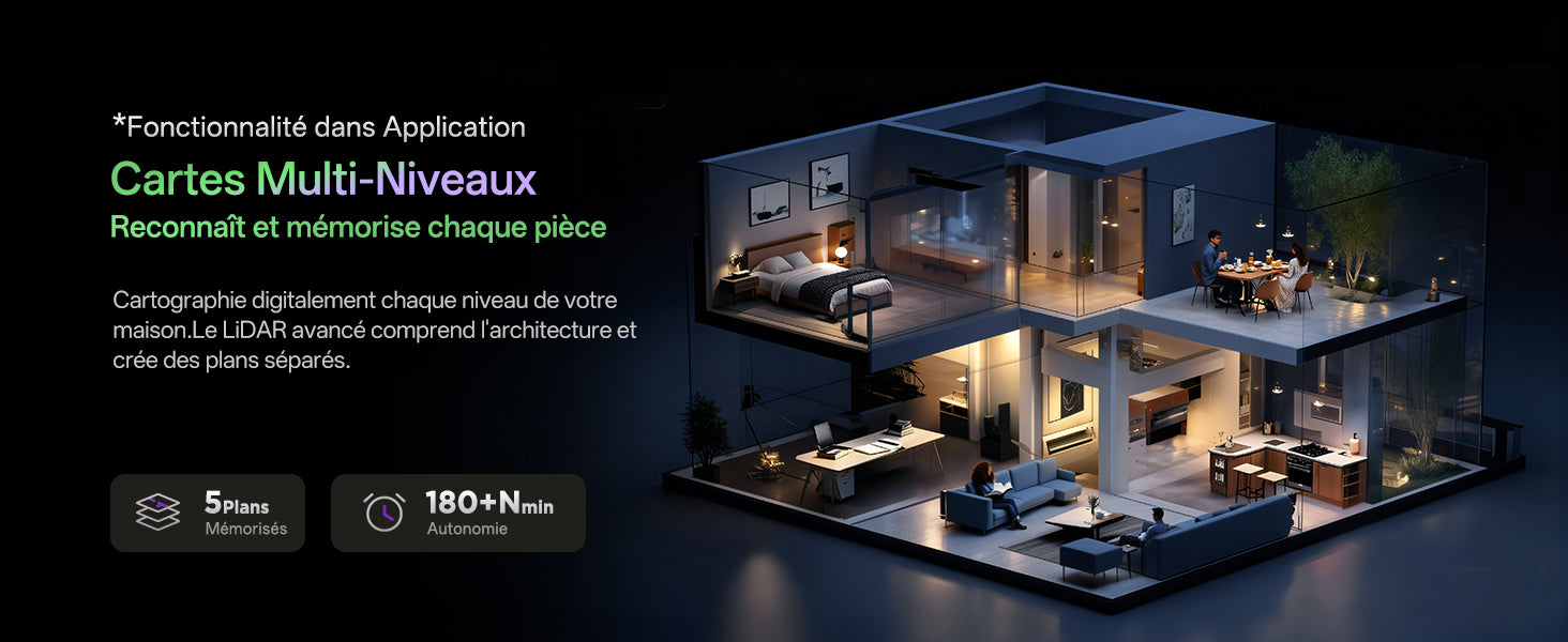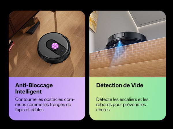 Évite automatiquement les obstacles courants et détecte les vide pour une sécurité totale.