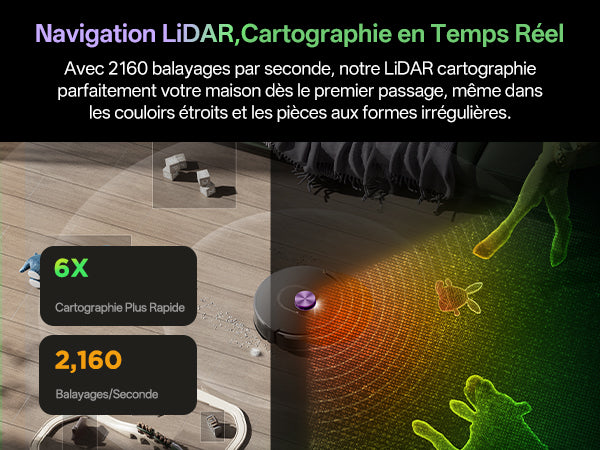 2 160 balayages/seconde. Une précision parfaite dès le premier passage, même dans les espaces complexes.